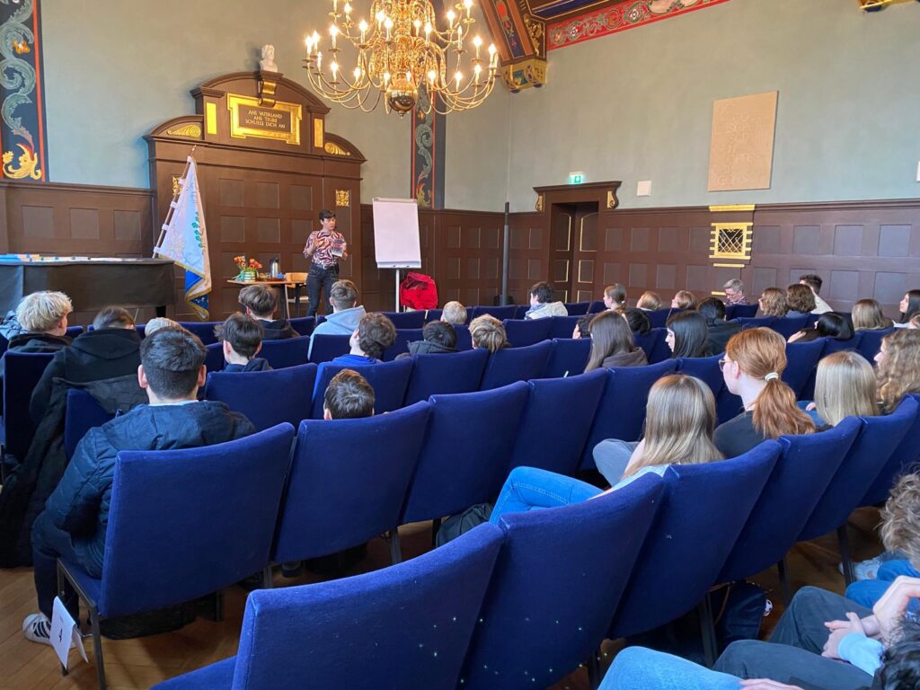 Am Mittwoch, dem 11.02.26 wurde der Giebelsaal der Albert-Schweitzer-Schule in Nienburg zu einem Geschichten-Kino. Die Autorin Antje Wagner las aus ihrem Buch „Vakuum“ – und schon nach wenigen Minuten wurde es totenstill, so dass man eine Stecknadel hätte fallen hören können.