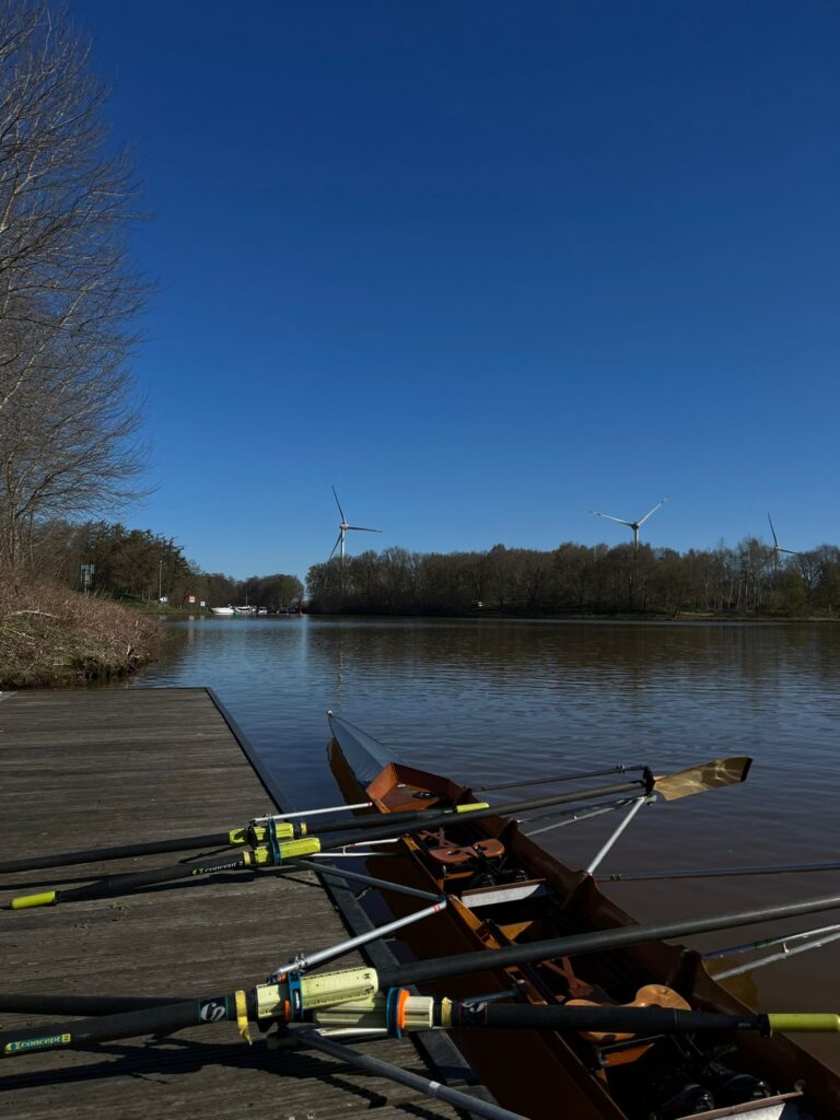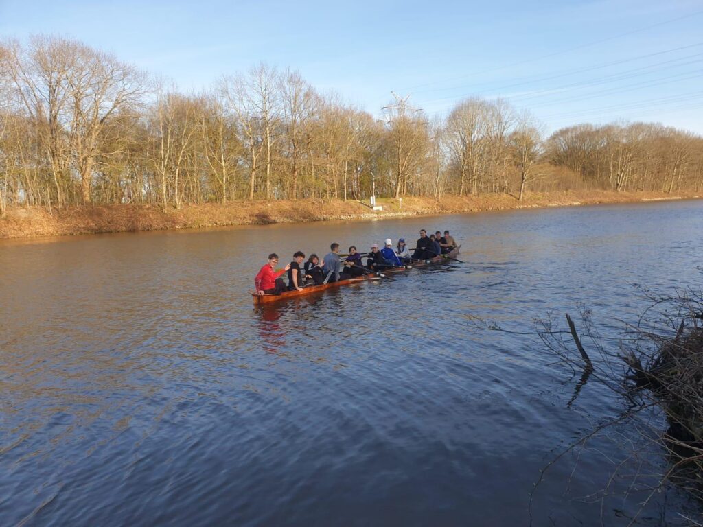 Die Abfahrt erfolgte am Ostermontag. Nach einem längeren Aufenthalt in Leer und einem anschließenden Fußmarsch erreichten die Teilnehmenden schließlich das Bootshaus in Dörpen. Nach der Ankunft wurden einige Boote aufgeriggert, sodass gegen 15 Uhr die erste Einheit auf dem Wasser beginnen konnte.