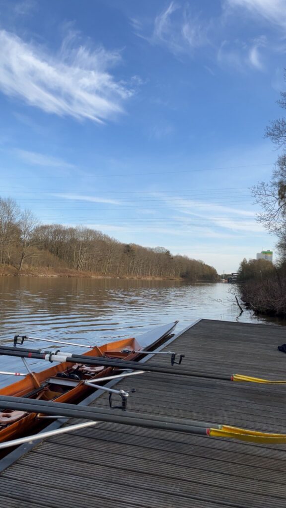 Zusätzlich stand für viele eine kleine Prüfung im Einer an: Während erfahrene Ruderinnen und Ruderer diese problemlos meisterten, stellte sie für Anfängerinnen und Anfänger eine echte Herausforderung dar. Ziel war es, eine etwa 500 Meter lange Strecke bis zur benachbarten Schleuse zu bewältigen – unter Beobachtung des Protektors.