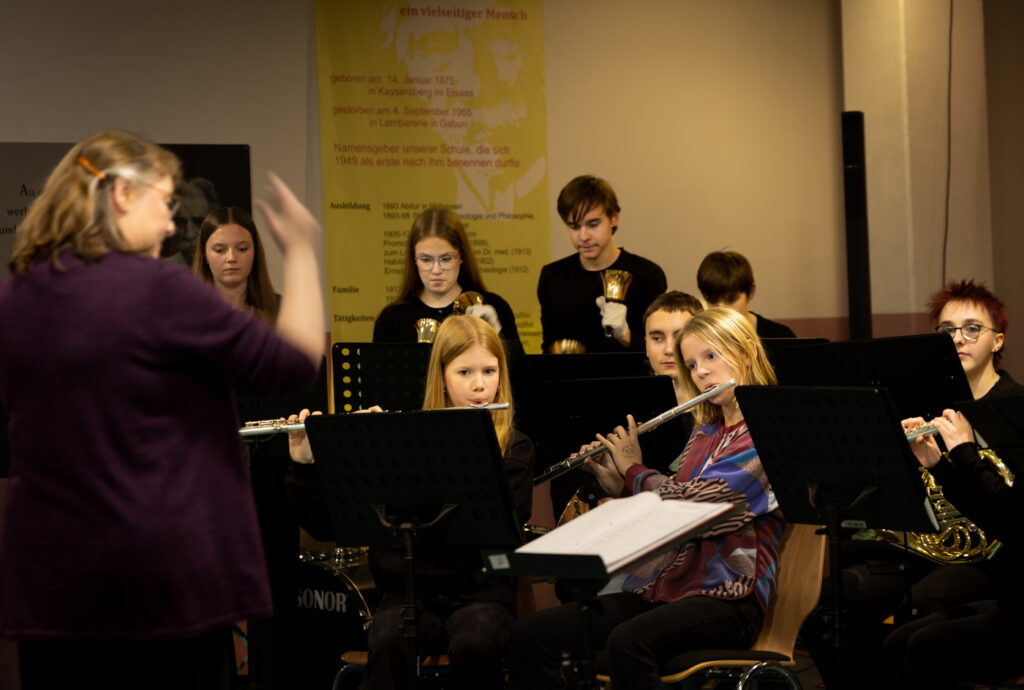 Musikgruppen der Albert-Schweitzer-Schule bringen Zuschauer in festliche Stimmung/Musikveranstaltung sorgt am 12.12.2025 für vollbesetzte Zuschauerreihen und sogar Gedränge auf den ‚Stehrängen‘