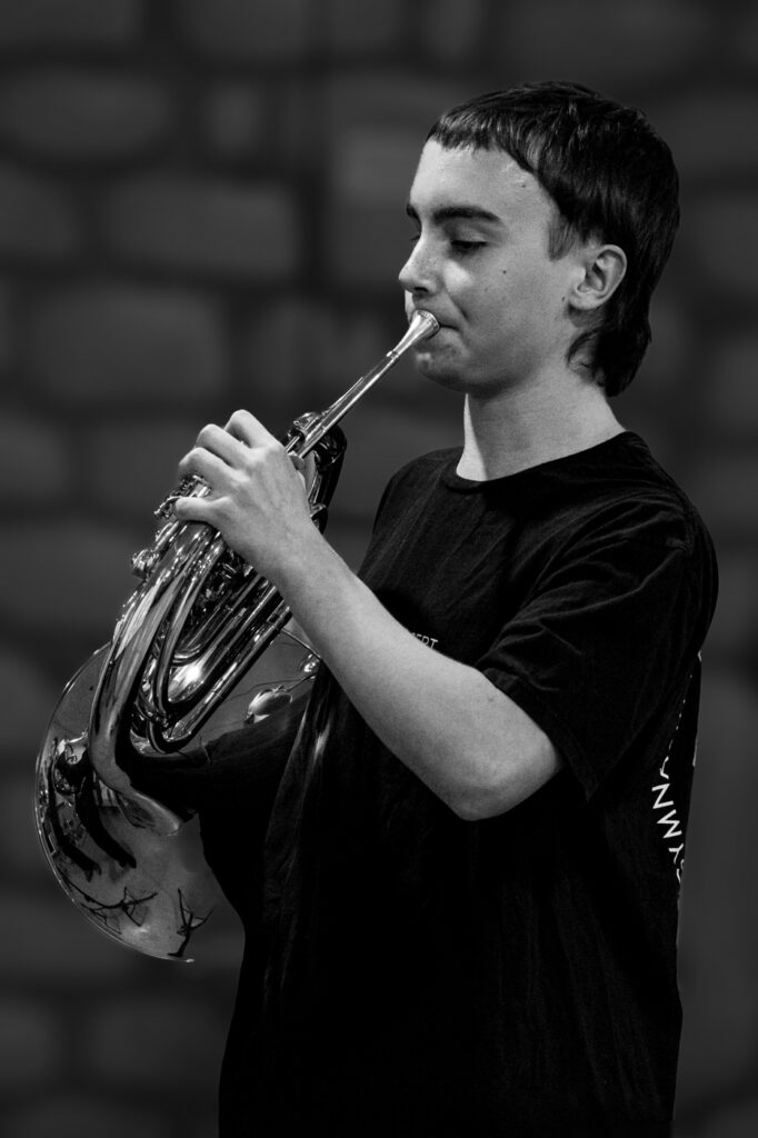 Anschließend gab die Bläser-AG unter der Leitung von Elisabeth Vogels, abweichend vom sonst meist vorweihnachtlichen Repertoire an diesem Abend, >Can you feel the love tonight< – spätestens da wurde dem Letzten warm ums Herz, vorzüglich passend zum wohltemperierten 17.00h-Tee. Mit >Christmas Star< und gemeinsam mit dem Handglockenensemble wurde es dann wieder weihnachtlich, gefolgt von >Christmas Bells<, >Happy X-Mas< und >Feliz Navidad<, gesungen von der Klasse 7b und vom Klavier aus angeleitet von Christina Hinzmann-Suckel. Den 17.00h-Tee genoss man nun, es ging schon auf sechs zu, mit einer deutlich weihnachtlichen Zimtnote, bevor ein Schüler-Trio mit Schubert und Mozart buchstäblich ins Horn stieß.